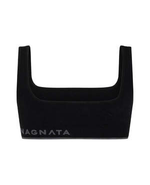 Superfine merino wool bralette in signature Nagnata rib crafted in their seamless knitting technique, offering mild compression and support. The square neckline is complemented by a detailed contrast jacquard stripe and Nagnata logo2 on the back hem band. This style is fully lined for additional support and a super-soft second-skin feel against the body. Made from 68% RWS merino wool, 27% GRS certified recycled polyester, 5% elastane.
