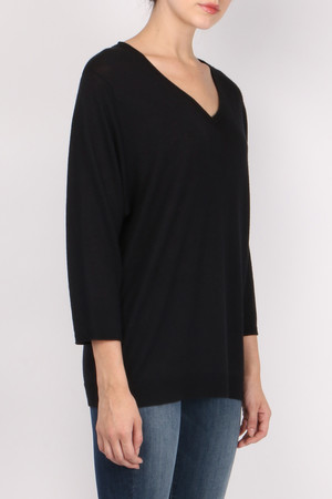 This light weight 3/4 sleeved sweater is the perfect layering piece this fall. It is perfect for a day out with the girls or a night out on the town. Composition: 80%viscose / 20% wool Measurements: Shoulder to hem 26in / 66cm Care: Dry clean or hand wash Made in Spain