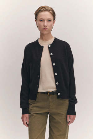 The Ada Crewneck Cardigan is crafted from super soft, Scottish-spun 100% Geelong lambswool. Inspired by classic crewneck cardigans with a gently modern sensibility, it features softened proportions and a subtly slouchy, relaxed silhouette. Finished with responsibly sourced Trocas shell buttons. Hand-linked and finished by hand using traditional fully fashioned knitting techniques. Made in Hawick, Scotland. Mid-weight 7gg knit.