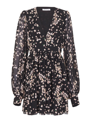 Add some dark romance to your wardrobe with the Camilla and Marc Gardin Coat Dress in Camelia Spot Print. Constructed from a printed silk this long sleeve dress features exaggerated sleeves, subtle gathering at the waist, a v neckline with a covered button opening and is partially lined.