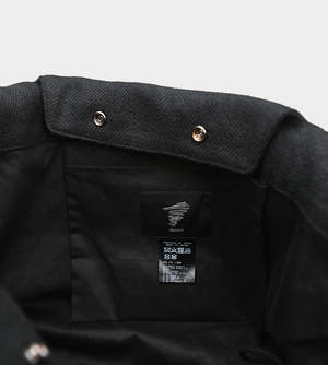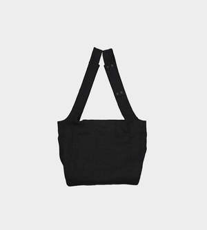 A stylish tote bag featuring a dot pattern design in black.