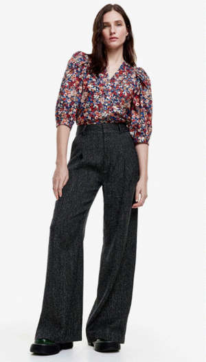A great wardrobe staple on its own, this pant also coordinates with a variety of Smythe blazers. Mid-rise, this full-length silhouette is drapey and features pleating and a wide leg. Designed to sit at the true waist; size up for a slouchier look if you prefer a slouchier fit. Model wears a size 26 jean and is wearing size 2, featuring a 32" inseam. 48% Linen, 31% Wool, 21% Polyester. Lining: 100% Cupro Rayon that is ecotoxicity-free and entirely biodegradable. 31% of fibres are recycled. Dry clean only. Made in Canada.