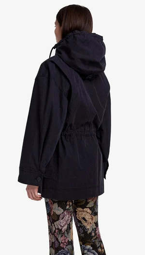 This new waterproof parka from SMYTHE features an oversized fit, a drawstring waist, a removable hood, a large flap pocket, and a velcro closure at the neck. Both stylish and functional, this jacket adds a punch to your outfits on cold days. Details: - Oversized fit - High collar with velcro closure - Zip fastening - Drawstring waist - Removable hood - Large flap pocket - Color: Washed Black - Model is 5'10" and wears size S - 71% cotton, 29% nylon - Lining: 100% cupro-rayon - Dry clean only