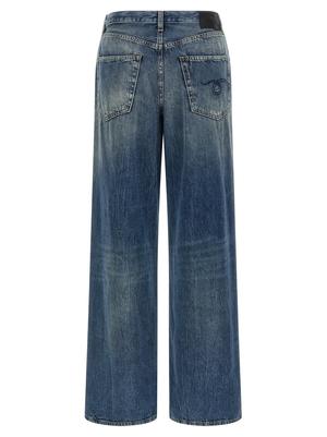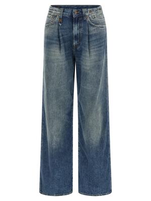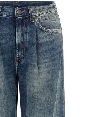 Women > Clothing > Jeans High-waisted delav cotton denim jeans, Damon style, with a wide pleated leg, zip and button closure, five pockets, and back logo2 tag. Composition: 100% cotton.