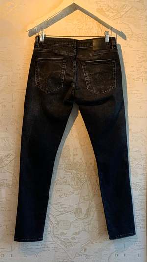 Relaxed skinny jean made with stretch Italian left hand twill black denim fabric. Worn black wash. 92% Cotton, 6% Elastomultiester, 2% Elastane