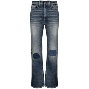 Men > Clothing > Jeans High-waisted slim-cut jeans from R13 featuring indigo blue cotton blend, dark wash, whiskering effect, high waist, slim cut, front button and zip fastening, and classic five pockets.
