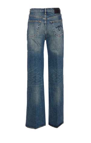 R13 denim blue tailored Charlotte jeans with button closure, five pockets, patch logo2, and cuffs. Composition: 100% Cotton.