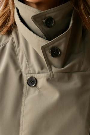 The Double Collar Frank Trench from Tibi is a runway-inspired piece that redefines classic outerwear. This sophisticated trench features innovative waterproof bonded nylon with a luxurious soft finish, engineered to withstand the elements while maintaining its refined aesthetic. The signature double collar design opens up endless styling possibilities, letting you express your personal approach to layering. Generous pockets, an adjustable lapel, and a removable belt ensure you have the flexibility to adapt to any occasion or season. Perfect for those moments when you need reliable protection without compromising on style, this trench bridges the gap between timeless elegance and contemporary edge. - 67% Polyamide, 18% Polyester, 15% Polyurethane