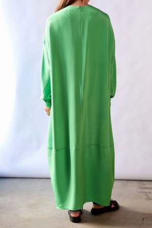 Slip into understated elegance with this 4-ply silk long sleeve cocoon dress from Tibi. The luxurious heavyweight silk drapes beautifully in a relaxed, cocoon silhouette that flatters without clinging. Thoughtful details like side pockets and a back zipper make getting dressed effortless, while the rich green hue works year-round. Dress it down with flats for casual comfort or elevate it with heels for special occasions. - 100% Silk