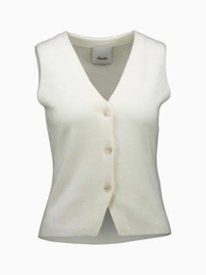 Sleeveless sweater vest with a V-neck and button-up front. - Sleeveless sweater vest - V-neck - Button-up front - 100% wool