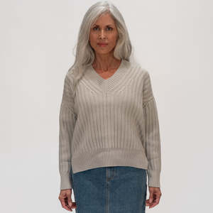 Crafted from pure cashmere, this Allude sweater offers effortless elegance with its ribbed knit, relaxed fit, and deep V-neckline. A timeless staple in a versatile neutral toneluxurious, understated, and endlessly wearable.