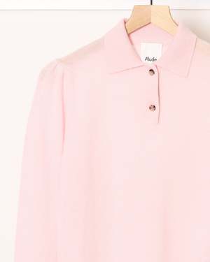 Timeless and refined, this pink polo sweater by Allude is an elevated knit essential crafted from pure cashmere. Clean lines and understated details define its classic silhouette, offering effortless sophistication with everyday comfort. - Classic polo neckline finished with elegant horn-effect buttons - Fine flat-knit construction for a smooth, polished look - Long sleeves and straight fit for timeless versatility - Lightweight 1-ply cashmere with exceptional softness and warmth - True-to-size, classic fit that layers easily or stands alone 100% Cashmere. Imported.