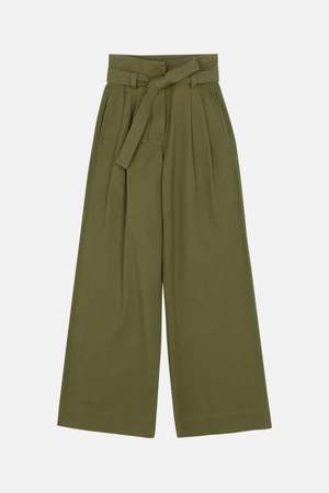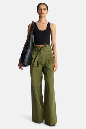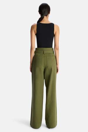 Styling Tip: Tuck in a fitted knit top to highlight the waist, finishing with a cropped jacket in cool weather. - Color: Olive - Structured silhouette - Notched high-rise waist with a self-tie belt - Wide Pleated Legs - Side Pockets - Style #: 2PANT00916 Mpn 2PANT00916 Sku ALCWFW23-06
