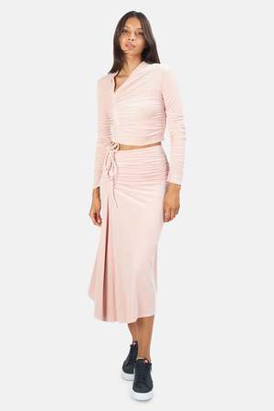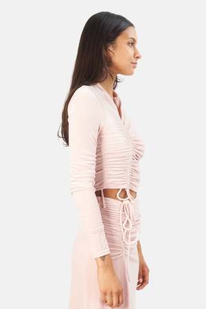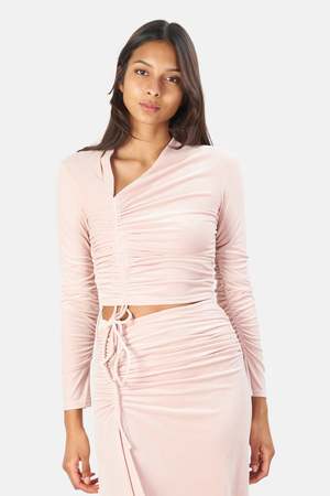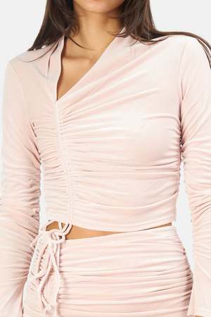 - Color: Sugarcane - Poly blend - Front drawstring fastening - Ruched fabric detail - Off-center neckline - Velvet fabric - Dry clean only - Style No. 8KTOP00606 Productcode ALCWHL21-06