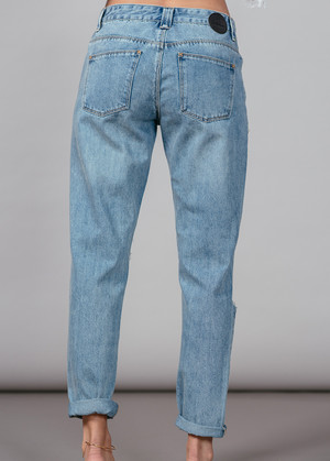 *FINAL SALE - no returns/exchanges Slouchy low-rise boyfriend jeans with front distressed detailing throughout Pair it with sneakers for a casual look or dressed it up with heels for a night out Light vintage wash Classic 5 pocket style Front zipper button closure Comfortable, relaxed loose fit 100% Cotton Machine wash cold Approx 37.5 in length Styled with Vibe Harslof Anklet Gold Plated, sold separately By Res Denim Model in size 25, true to size Model Measurements: Height 57, Waist 25", Bust 32", Hips 33"