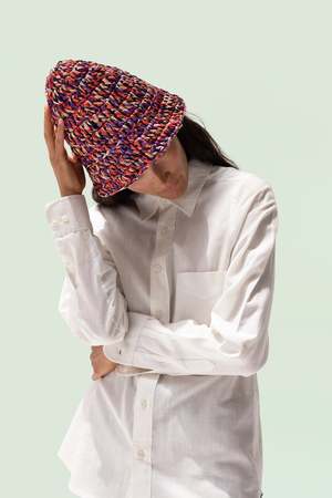 Our sunhat is made of raffia, making it very flexible. You can shape your hat individually to your preferred form. It can be worn with an open brim for sun protection or rolled up. Handmade by women in the US. Composition: Biodegradable raffia & cotton. Keep dry at all times. Features a vegan apple leather label made from recycled industrial waste of apple peels and cores.