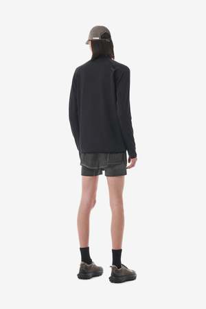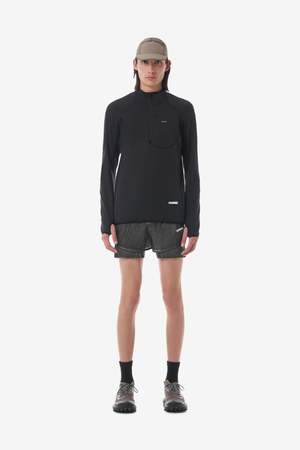 The FuzzFleece Half-Zip Hoodie by SATISFY RUNNING in Black.