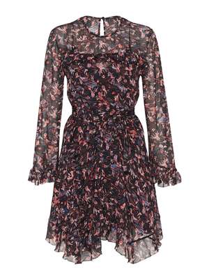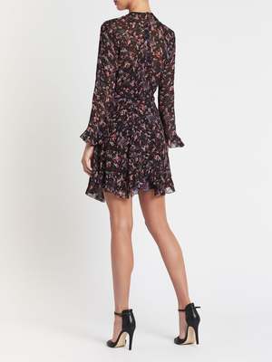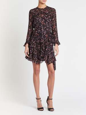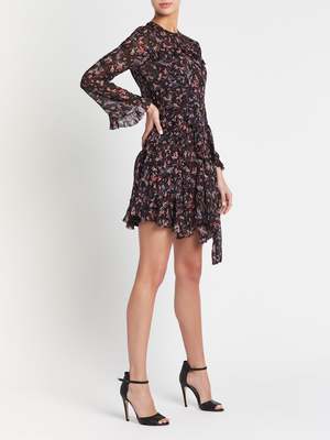 The IRO About Dress in Black is a great transeasonal addition to any wardrobe. Constructed in viscose this long sleeve front tie dress features a round neckline, soft ruffle and frill detailing on the centre front, and lower hemline and is finished with a beautiful abstract floral print. This eye catching style will keep you looking super chic from day to night. FABRIC OR COMPOSITION The IRO About Dress in Black is made from 100% Viscose, Lining: 100% Viscose SIZE AND FIT The IRO About Dress in Black fits true to size Neck Drop: 4cm / 1.5inch Sleeve Length: 52cm / 20.4inch Back Length: 83cm / 32.6inch Measurements taken from a size 36 FR Model is wearing a Size 36 FR. Allison is 178cm / 5' 8" Bust 81cm / 31.8in /// Waist 58cm / 22.8in /// Hips 84cm / 33in BRAND Since IRO Paris reached the shores of Australia, it has become a cult brand renowned for its unique street style. The brainchild of Parisian brothers Laurent and Arik Bitton, IRO is inspired by their passion for music and fashion. Best loved for their IRO leather jackets and IRO jeans, the brands style is epitomised by classic Parisian chic combined with rugged street style. Draped mini skirts, luxurious leather jackets and sexy skinny jeans, IRO is the womens clothing brand for those that want to make an impact with their style. Shop IRO clothing online at Order of Style today.