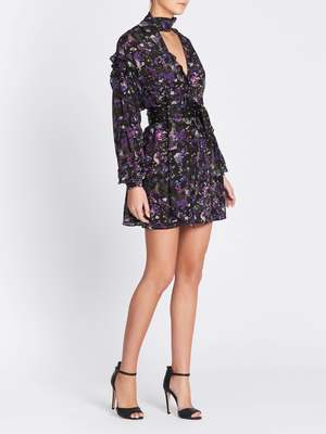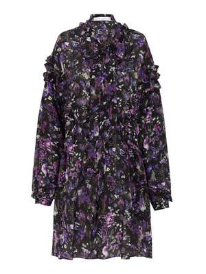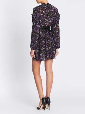 Add some dark florals to your wardrobe with the IRO Equate Dress in Purple. Constructed from an ultra soft floral printed silk this long sleeve dress features a tie neck, drop sleeve and is finished with cascading ruffle details and subtle gathering. Dress is styled with the IRO Studs Belt. FABRIC OR COMPOSITION The IRO Equate Dress in Purple is made from 100% Silk SIZE AND FIT The IRO Equate Dress in Purple is a loose style fit Measurements taken from a Size 36 FR Neckline Drop: 10in / 25.4cm Sleeve Length: 22.5in / 57.15cm Back Length: 34.5in / 87.6cm Tie Length: 72in / 182.9cm Model is wearing Size 36 FR, Sarah is 178cm / 59 Bust 83cm / 32 1/4 in /// Waist 66cm / 26 in /// Hips 89.5cm / 25 in BRAND Since IRO Paris reached the shores of Australia, it has become a cult brand renowned for its unique street style. The brainchild of Parisian brothers Laurent and Arik Bitton, IRO is inspired by their passion for music and fashion. Best loved for their IRO leather jackets and IRO jeans, the brands style is epitomised by classic Parisian chic combined with rugged street style. Draped mini skirts, luxurious leather jackets and sexy skinny jeans, IRO is the womens clothing brand for those that want to make an impact with their style.
