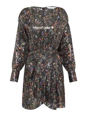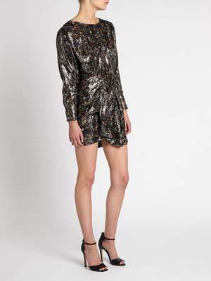 The IRO Moseny Dress in Black Multi stuns with an electric shimmer. Crafted from an ultra luxe silk blend this long sleeved mini dress will have you even ready with features of a gathered pleated waist that tappers in the waistline and is finished with an invisible zip closure. Team with your favourite heels or ankle leather boots for a feminine rock look that will take you event to event. ---- FABRIC OR COMPOSITION The IRO Moseny Dress in Black Multi is made from 85% Silk, 15% Polyester SIZE AND FIT The IRO Moseny Dress in Black Multi fits true to size Neck Drop: 5cm / 1.9inch Sleeve Length: 55cm / 21.6inch Back Length: 83cm / 32.6inch Measurements taken from a size 36 FR Model is wearing a Size 36 FR, Jessica is 176cm / 5'9.5" // Bust 79cm /// Waist 64cm / 25" /// Hips 89cm / 35"