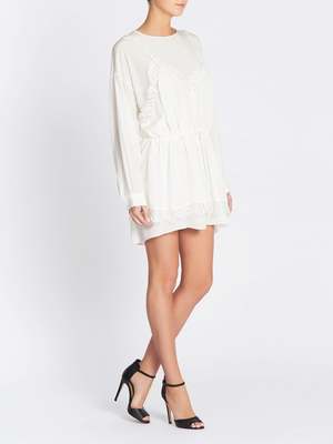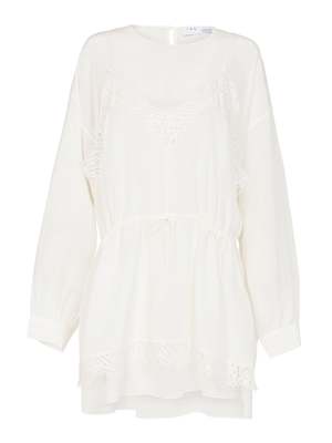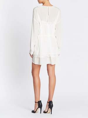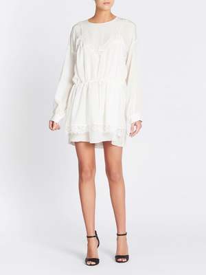 The Iro Hassle Dress in Ecru is the perfect little white dress to add to your wardrobe. Constructed from an ultra soft silk this mini dress features long sleeves with a drop shoulder, round neckline, cuffs with subtle gathering and a slip inspired layer with spaghetti straps and lace detailing that is finished with a drawstring at the waist for cinching. ---- FABRIC OR COMPOSITION The IRO Hassle Dress in Ecru is made from 100% Silk Lace: 83% Cotton 17% Polyamide SIZE AND FIT Measurements taken from a size 36 FR Sleeve Length: 20.8inch / 53 cm Back Length: 34.2inch / 87cm Model is wearing Size 36 FR, Sarah is 178cm / 5'9 Bust 83cm / 32 1 / 4 in /// Waist 66cm / 26 in /// Hips 89.5cm / 25 in