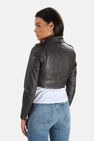 - Color: Anthracite - Supple lambskin - Cropped profile - Belted at the waist - Zip pocket at the chest - Snap epaulets - Snap lapels - Asymmetric zip closure - 100% Lamb leather - Imported - Style #: WM09LEUFY-GRY35 - Leather speacilist only *Model is 5'9" wearing size 36 Productcode ROWF9-4 Designer IRO