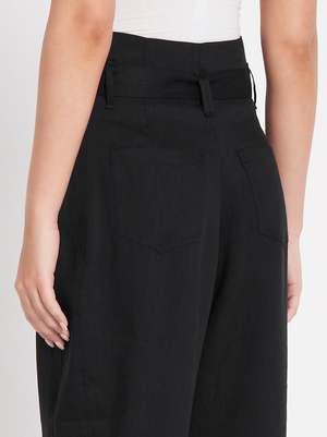 Keep it chic with the IRO Margate Pant in Black. These classic tapper leg trousers are constructed from a soft linen blend and feature a high rise, belted waist and soft pleats. ---- FABRIC OR COMPOSITION The IRO Margate Pant in Black is made from 72% Linen and 28% Cupro with a 51% Cotton, 49% Viscose lining SIZE AND FIT The IRO Margate Pant in Black fits true to size Measurements taken from a Size 36 FR Rise: 37cm / 14.5inches Outseam: 110cm / 43.3inches Model is wearing a Size 36 FR, Jessica is 176cm / 5'9.5" Bust 79cm /// Waist 64cm / 25" /// Hips 89cm / 35"