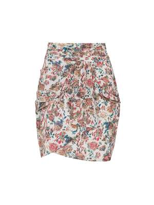 With a bold floral print and a pleated waistband, the IRO Sway Skirt is essential for a fun girls night out. Composed of 100% silk and featuring a hidden zip, this crepe fabric skirt would match perfectly with a simple cami and a leather jacket. ---- FABRIC OR COMPOSITION Main 100% Silk/ Lining 100% Polyester SIZE AND FIT The IRO Sway Skirt in Ecru fits true to size Measurements taken from Size 36 FR Back Length: 20.5in / 52cm Model is wearing Size 36 FR, Sarah is 178cm / 59 Bust 83cm / 32 1/4 in /// Waist 66cm / 26 in /// Hips 89.5cm / 25 in