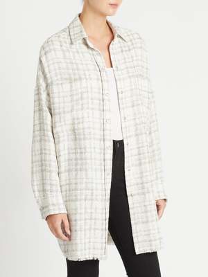 The overshirt trend is the must have style item for Autumn. The perfect mix between style and comfort the Annika Overshirt in White / Silver from IRO is a open weave fabric featuring silver, ecru and white thread work. Style over your jeans or leather pants for the perfect outfit. ---- FABRIC OR COMPOSITION The IRO Annika Overshirt in White/Silver is made from 38% Polyester, 15% Recycled Polyester, 12% Cotton, 9% Viscose, 5% Polyamide, 5% Acrylic, 3% Metallic Polyester Lining: 51% Cotton, 49% Viscose ---- SIZE AND FIT The IRO Annika Overshirt in White/Silver fits true to size Measurements taken from a Size 36 FR Neck Drop: 5.5cm / 2 inches Sleeve Length: 79.5cm / 31 inches (from top of shoulder) Back Length: 89.5cm / 25 inches Model is wearing a Size 36FR, Sarah is 178cm / 59 Bust 83cm / 32 1/4 in /// Waist 66cm / 26 in /// Hips 89.5cm / 25 in ---- BRAND Since IRO Paris reached the shores of Australia, it has become a cult brand renowned for its unique street style. The brainchild of Parisian brothers Laurent and Arik Bitton, IRO is inspired by their passion for music and fashion. Best loved for their IRO leather jackets and IRO jeans, the brands style is epitomised by classic Parisian chic combined with rugged street style. Draped mini skirts, luxurious leather jackets and sexy skinny jeans, IRO is the womens clothing brand for those that want to make an impact with their style. Shop IRO clothing online at Order of Style today.