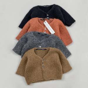 Italian designer Monica Rusconi of Album di Famiglia has crafted an imaginative childrens and women's collectsion using various shades of grey, white and pastels using the highest quality materials. These collectsions are designed for longevity with minimalist cuts. - Chunky knit wool sweater - Button closure down the front - Long sleeves - One size fits approximately newborn to 3 months 70% Alpaca, 7% Merino, 23% Nylon #41147