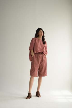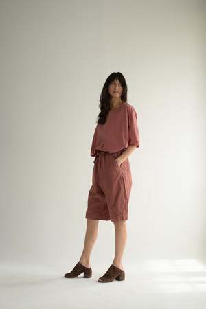 Album di Famiglia's CC cotton. Elastic waist with internal drawstring. Front side seam pockets, back patch pockets. Cropped length, wide leg. 100% cotton. Made in Italy. Melissa is 5'8" wearing size Small.