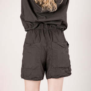 Italian designer Monica Rusconi of Album di Famiglia has crafted an imaginative childrens and women's collectsion using various shades of black, white and pastels using the highest quality materials. These collectsions are designed for longevity with minimalist cuts. - Loose fit shorts - Slash pockets at the sides - Two oversized patch pockets on the back - Above the knee length - Faux fly - Elasticized waist with drawstring 100% Cotton 25S2231