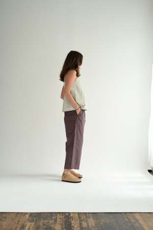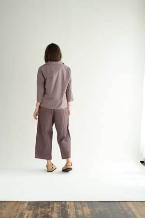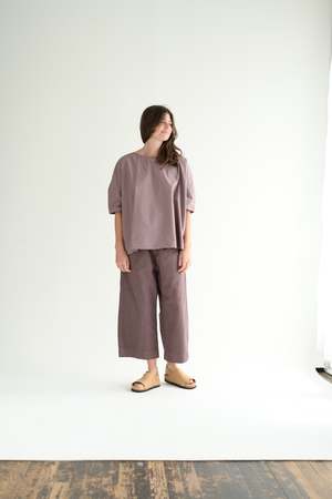 Album di Famiglia Wide & Short CC trousers feature a wide-leg, cropped silhouette with an elasticated drawstring waist in compact cotton canvas. Slightly dropped crotch. Slash pockets at sides. This compact cotton fabric has a paper-like hand with a washed, slightly wrinkled appearance. 100% cotton. Made in Italy. Caroline is 5'5" wearing size XS.