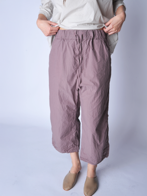 The Wide and Short Pant is made in Album's classic poplin tissue cotton and features an elastic waist with tie, two back pockets, and side seam pockets. Cropped length. Model is 5'8" and wearing size S. Made in Italy. 100% tissue cotton.