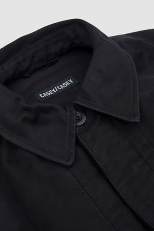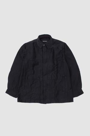 Made from faille with a washed finish, this jacket features a classic shirt collar and concealed button placket for a clean, minimal look. Slash pockets at the front and two interior pockets offer subtle functionality, while the back yoke detail adds structure. Corozo buttons complete the piece with a natural, sophisticated touch. The dense and resilient cotton fabric, inspired by traditional workwear, has a satin faille weave that lends a subtle luster and will develop a rich patina over time. Softened by a washed finish, it balances strength and suppleness for both structure and comfort.
