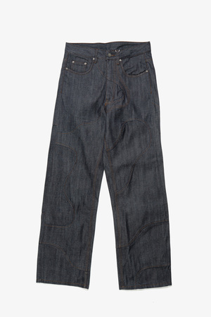 The Curve Jeans feature Kody Phillips signature curve silhouette, constructed with wavy paneling and exposed outer seams for a distinctive look. Cut with a mid-high rise, they are made from 100% Japanese selvedge denim at 13oz, offering structure, durability, and a clean finish. 100% Japanese selvedge 13oz denim. Made in China. Sizing - True to size. - Model is 5'7" / 115 lbs, wearing size 30. Measurements (in cm) Size: 30 / 32 / 34 / 36 1/2 Waist: 39 / 41 / 43 / 45.5 Rise: 36 / 36 / 37 / 37.5 Inseam: 76 / 79 / 79 / 80.5 Leg opening: 24 / 25.5 / 27 / 28 *Manual measurement may result in a 12 cm margin of error.