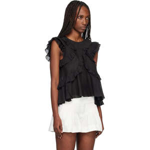 Frilly cotton voile top. Round neckline. Sleeveless. Frills with an embroidered finish. Buttoned teardrop-shaped opening in back. Loose fit. Style: HT0828FAB3J04E20WH NALOU. Composition: 80% cotton, 20% viscose.
