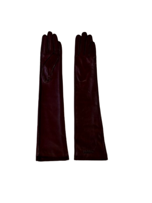 Fine leather opera gloves in "Choco" brown. Fully lined, elbow length. Debossed micro logo2 at each gloves hem. Size measurements reference the circumference of your palm: Small 7 in., Medium 7.5 in.
