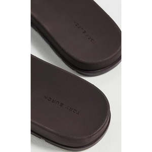Tory Burch buckle slides in Dark Cocoa.