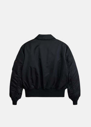 The Cwu 45/P flight jacket features a logo2 patch, zip fastening, point collar, ribbed hem, and sleeve pocket. 100% Nylon Made in China.