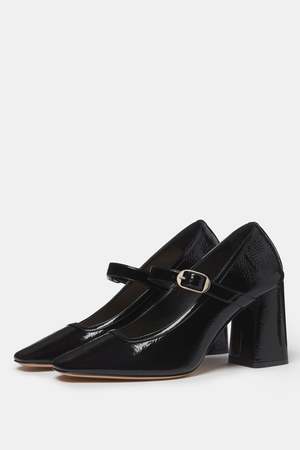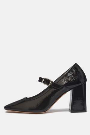 The Mary Jane is re-imagined in a pump style by Le Monde Beryl. Perfect for evenings out or days at the office. Finished with patent leather and a square toe. Heel height: 8.5 cm / 3.5". Color: Black. Square toe. Block heel. Made in Italy.
