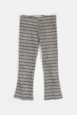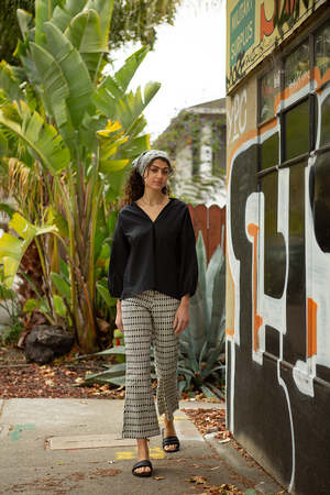 Low rise, slim fit pant with a slightly flared cropped leg in the original Erica Tanov print, 'Jacobsen'. Features zip front with tab closure. Any irregularity in printing should not be viewed as a defect but rather celebrated as a hallmark of the hand-block printing process used to make this piece. Model is 5'10" and is wearing the size 2. Made in India. 100% Cotton. Hand wash separately in cold water. Line dry. Sizing: 0 (US 2-4): Waist 14", Hip 17", Inseam 27" 1 (US 6-8): Waist 15", Hip 18", Inseam 28" 2 (US 10): Waist 16", Hip 18.5", Inseam 29" 3 (US 12): Waist 17", Hip 19.5", Inseam 29"