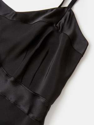 Our best-selling and most renowned essential slip dress, now envisioned in fluid black silk charmeuse. Lola is bias-cut and french seamed with all the vintage detailing of an heirloom silk slip. With classic bodice seams that provide structure with ease, the Lola is designed for an exquisite perfect fit. Versatile enough to wear from day to night, with or without a bra. The Lola Silk Slip dress is Erica Tanovs first silk slip dress design and has been an essential for leading ladies since it debuted at Barneys in the early 1990s from Madonna to Julianne Moore & SJP, the Lola has graced both cinema screens and prima ballerinas. Erica Tanov Now available in size 4 - US Women's size 12/14 Shown with the Alpaca Fringe Collar in Black Details Made in USA. 100% Silk. Dry clean only. Choose your dry cleaner responsibly. Model is 5'8" and wears a size 1.