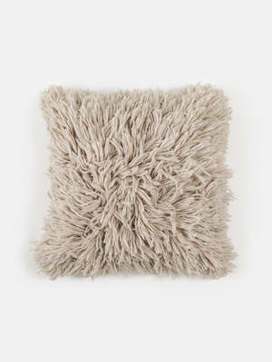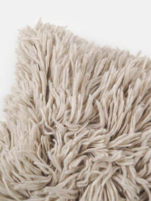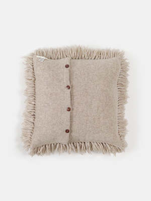 Baby alpaca and wool shag pillow in fawn in with wooden button closure. An ultrasoft, luxurious piece for adding warmth and texture to any space. Hand-knit and hand-knotted in Bolivia utilizing World Fair Trade certified practices. Erica Tanov Details Measures 20" x 20". Ethically and sustainably hand knit in Bolivia. 70% Baby Alpaca, 7% Merino Wool, 23% Polyamide . Includes removable insert. Cover can be hand washed cold. Do not bleach. Dry flat. Warm iron as needed.