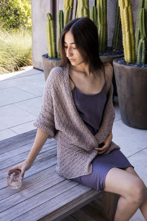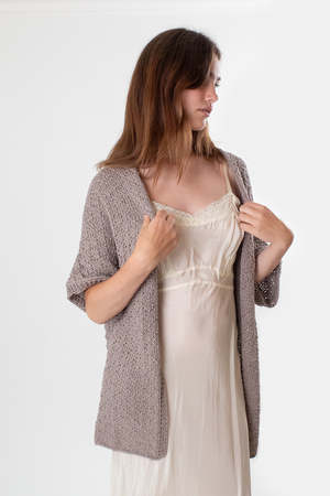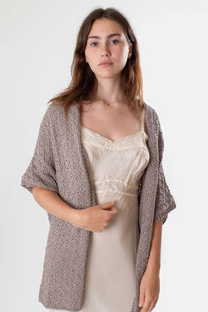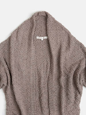 Hand knit cotton long cocoon cardigan in doe with kimono sleeves that you'll love wearing throughout the day. A breathable, lightweight layer to put over a slip dress for summer coverage or to wrap up in during cooler months. Made in a universal size to fit all. Due to the handmade nature of this piece, length may vary slightly. Erica Tanov Details Ethically hand knit in Bolivia. 100% Cotton. Hand wash cold and dry flat. Model is 5'4" and wears the universal size. Sizing Erica Tanov Size US Size Chest Sleeve Length OS 23.5" 18" 32"