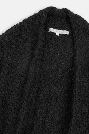 Hand knit, super soft long cocoon cardigan with kimono sleeves to wear throughout the day. A sumptuous, slightly textured layer to wrap up in during the colder Fall and Winter months. Made in a universal size to fit all. Due to the handmade nature of this piece, length may vary slightly. Sizing: Erica Tanov Size | US Size | Chest | Sleeve | Length OS | 23.5 | 18.5 | 31.25 Details: Ethically hand knit in Bolivia. 70% Baby Alpaca, 23% Polyamide, 7% Merino Wool. Hand wash cold and dry flat.