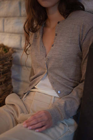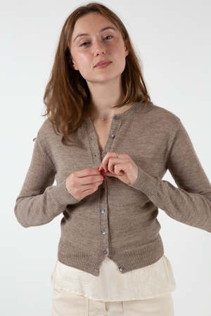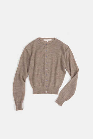 Pre-order. Please note this item is expected to ship January 5th. Fitted cardigan in lightweight baby alpaca. Finished with ribbings at hems. Details Handmade in Bolivia. 100% Baby Alpaca. Dry clean only.