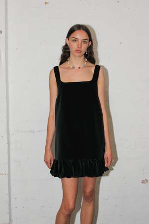 Dress Details: - Velvet mini dress. - Bubble hem detail. - Invisible zipper closure in the centre back. - Fully lined. - Cut from a deadstock cotton velvet with a cotton lining. Made to order by Ashiya in Melbourne. Please allow up to 10 days for creation before shipping. Garment Measurements: - Size XS: Width at armpit 41 cm, length 82 cm - Size S: Width at armpit 43.5 cm, length 83 cm - Size M: Width at armpit 46 cm, length 84 cm - Size L: Width at armpit 48.5 cm, length 85 cm - Size XL: Width at armpit 51 cm, length 86 cm Grace is 175 cm tall and wears a size S. Final Sale policies and return conditions may apply; see store terms if applicable.