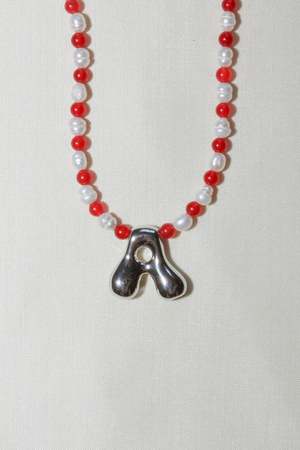 Necklace Details: - Freeform pearls and glass beads. - 925 sterling silver finishings. - 925 sterling silver parrot clasp. - Stainless steel pendant. - 43cm long. Made by Ashiya in Melbourne. Pre-order letters take approximately two weeks to ship from order date.