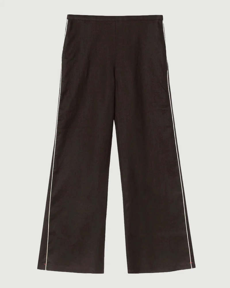 The Pippen Pant by Xirena is a wide-leg pant crafted from lightweight Marina Linen, featuring an elasticized waist, side seam pockets, and contrast piping. - Material: 100% Linen, Marina Linen - Fit: True to size - Inseam: 31 in. | Rise: 9.6 in. | Leg Opening: 11 in. - Style it with: the matching Camila Top - Style #: X7MRL046 Model is 5'10" and wears size Small.